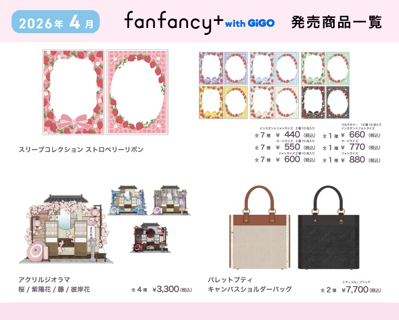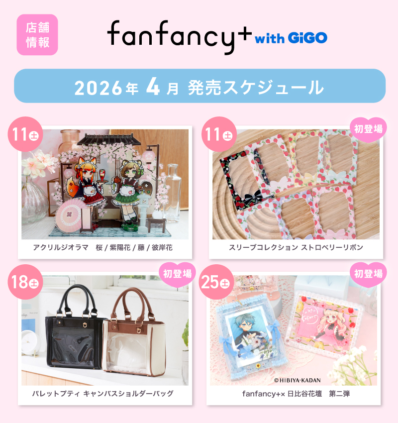 【fanfancy+ with GiGO】2026年4月発売スケジュール fanfancy+ with GiGO情報2026年4月の発売スケジュールを公開♪取扱い予定、販売方法、再入荷については各店のXアカウントからお知らせいたします!こちらからフォローして続報をお待ちください フォローはこちら 09 ホワイト